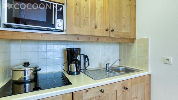 - Une cuisine équipée avec notamment : bouilloire électrique, four à micro-ondes, lave-vaisselle, plaques de cuisson...