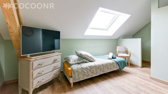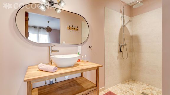 - Chambre 2 : un lit queen-size (160x200) et une salle d'eau attenante avec douche et WC