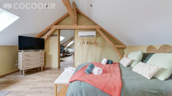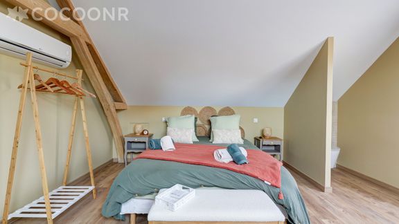 - Chambre 1 : un lit queen-size (160x200) et une salle d'eau attenante avec douche et WC