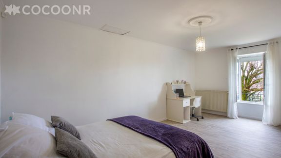 - Chambre 1 : un lit double (140x190) avec coin bureau