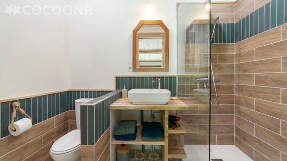 - Une salle d'eau avec douche, WC