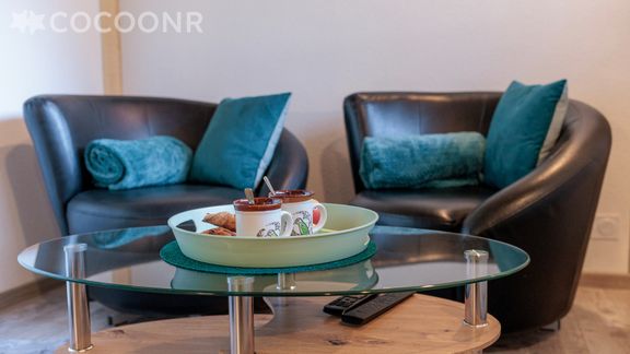 - Une pièce de vie de 14 m² avec TV, fauteuils, espace repas et poêle à bois (première flambée offerte)