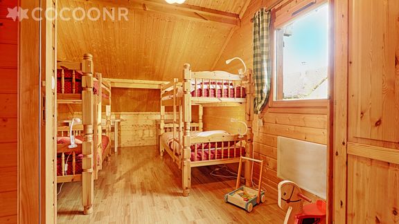 - Chambre 4 : deux lits superposés et un lit simple, soit 5 couchages individuels. Chaque lit est équipé d'un éclairage individuel.