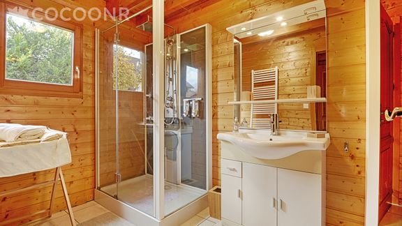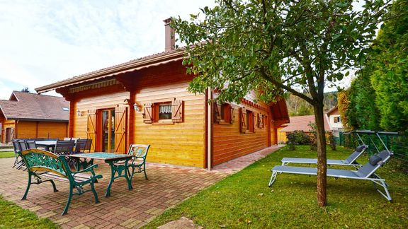 - Une grande terrasse de 40 m² fait le tour du chalet.
