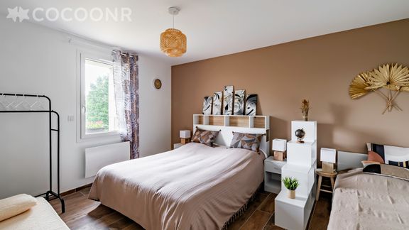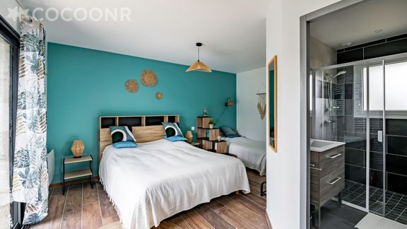 - Chambre 1 : un lit queen-size (160x200), un lit simple (90x190) et un canapé lit-double pour deux personnes