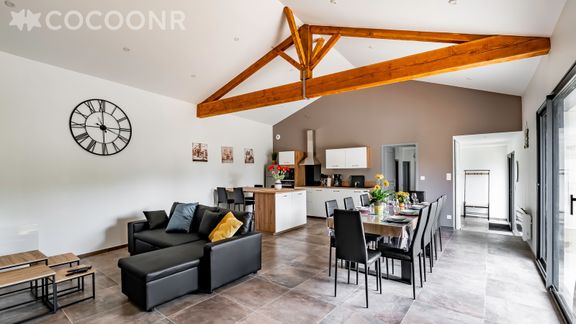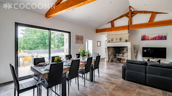 L'agence Cocoonr/Book&Pay vous propose à la location, cette charmante maison avec piscine, d’une superficie de 130 m² et pouvant accueillir jusqu’à 12 voyageurs. Elle est composée d’une jolie pièce à vivre de 50 m², d'une cuisine équipée, de quatre belles chambres, de deux salles d'eau (avec douche) et vous pourrez profiter d’un jardin d’environ 400 m². Wifi (fibre optique) inclus, nous n’attendons plus que vous !